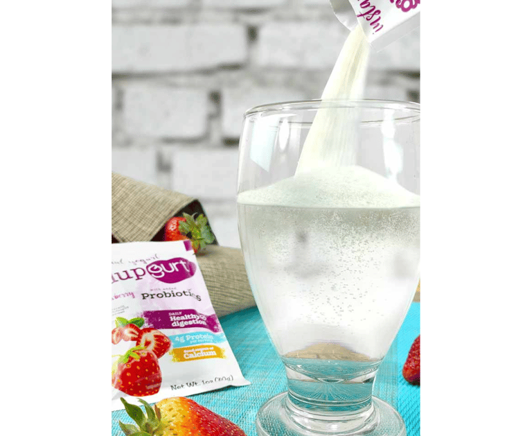 Pour GlupGurt in half a cup of water or daily milk (4-5 oz).